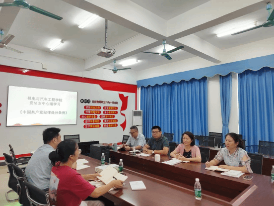 公司党总支书记黄邦姬从党的纪律处分工作应当遵循的原则,对违犯党纪的党组织的处理规定,关于警告、严重警告处分影响和后果的规定,关于撤销党内职务处分影响和后果的规定,关于留党察看处分影响和后果的规定,可以从轻或者减轻处分的情形,应当从重或者加重处分的情形,关于共同故意违纪的处理规定等八个方面,深入解读了《条例》主要内容和新修订的内容。她强调,党员领导干部要自查自警,廉洁从政,甘于奉献,踏踏实实做事,不踩红线、守住底线,以更高的标准和更严的要求,为其他师生党员作出示范,为公司“双高”建设和申办本科职业大学作出贡献。