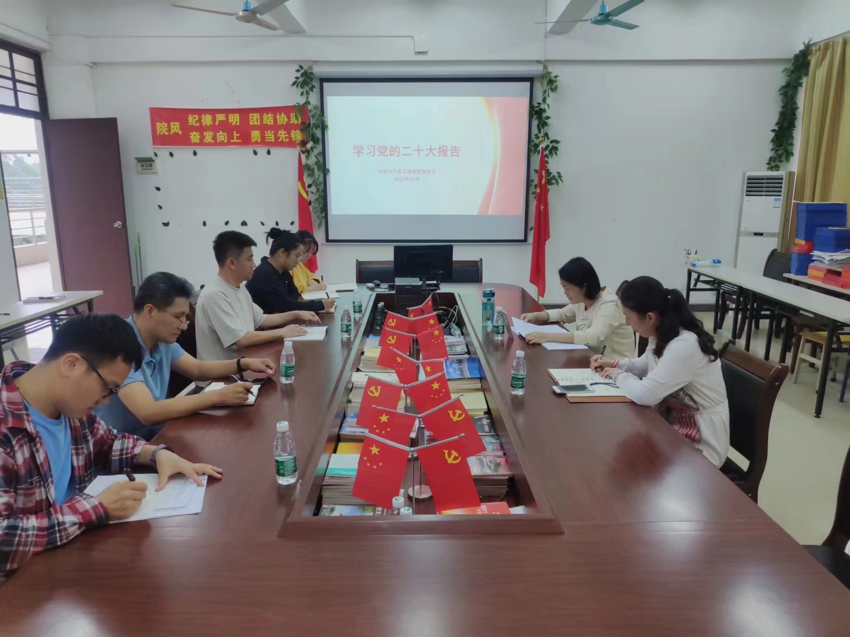10月24日,公司党总支召开线上线下专题会议传达学习党的二十大精神 ,深刻领悟党的二十大精神,研究学习贯彻落实措施,公司全体党员参加,公司党总支书记黄邦姬领学党的二十大精髓,各个党员纷纷做学习分享和发言。