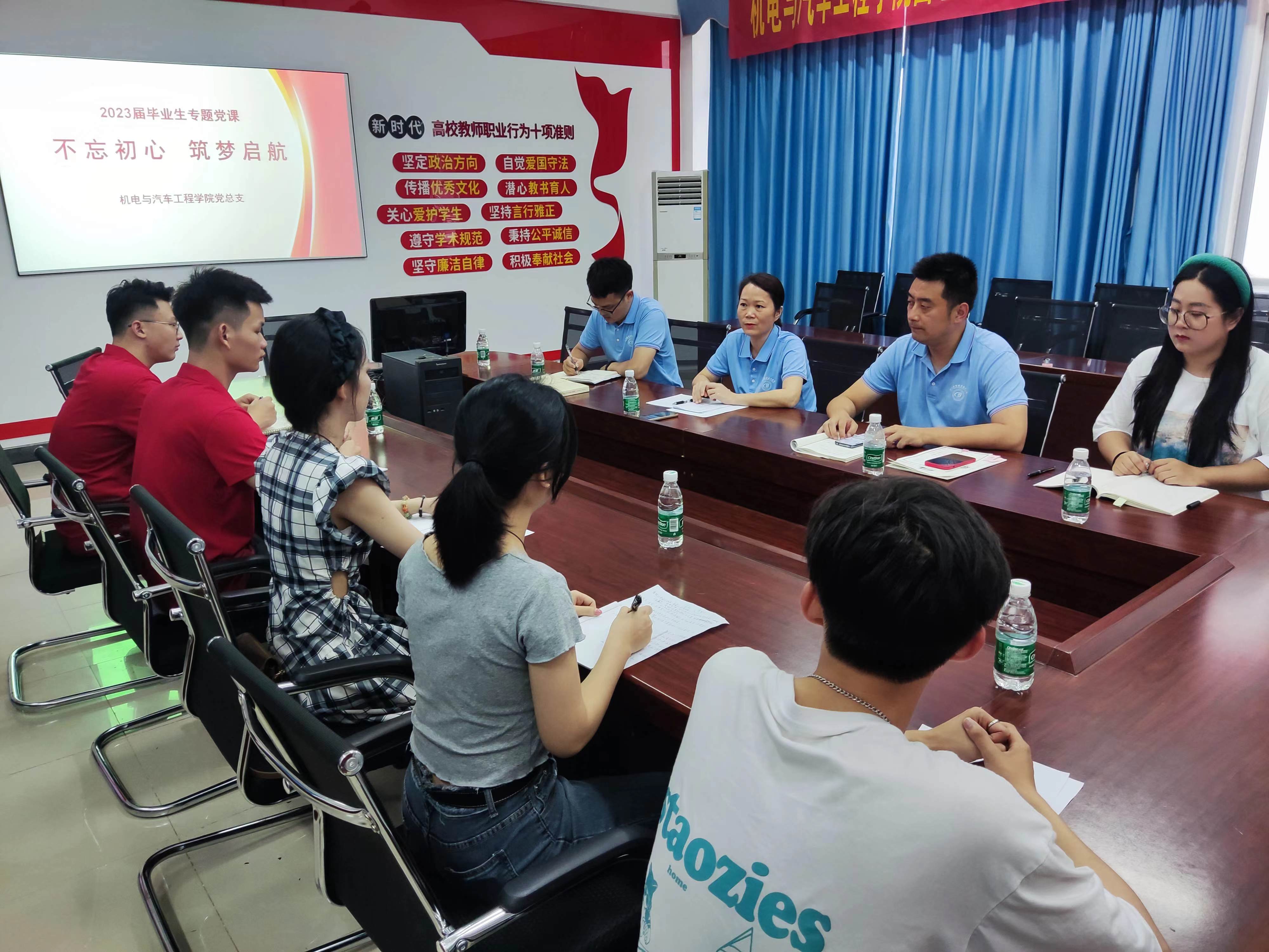 为加强毕业生党员教育,激励全体毕业生党员坚定信念, 6月16日下午,伟德国际1946员工党支部以线上线下相结合的方式在2-406会议室召开了主题为“不忘初心,筑梦启航”的毕业生专题党课暨预备党员转正大会。公司党总支书记黄邦姬为全体2023届毕业生党员上了“最后一课”,会议由员工党支部书记周恺主持。
