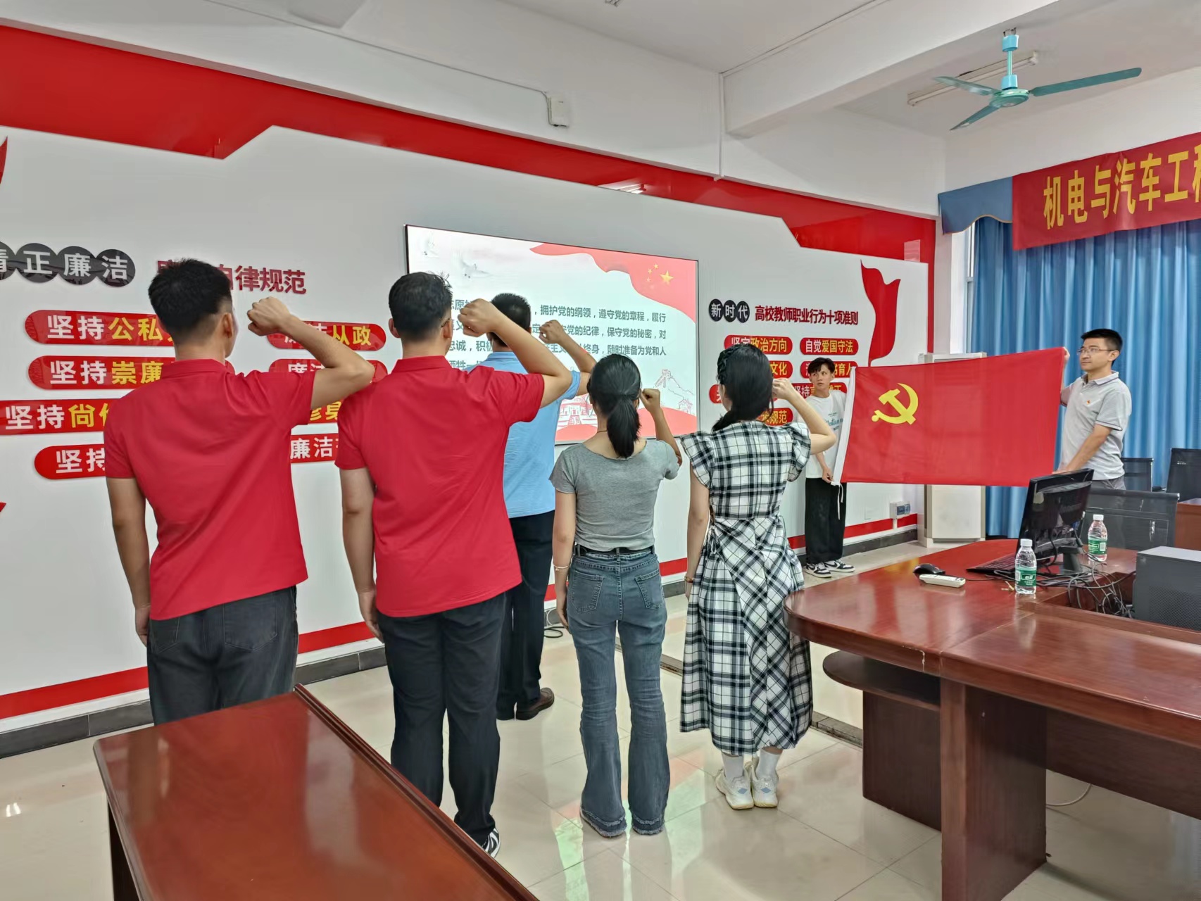 黄邦姬书记首先向毕业生们表达了美好的祝愿,希望同学们能在将来披荆斩棘,以梦为马,同时对毕业生党员提出三点要求:一是要坚定理想信念。要结合学习贯彻习近平新时代中国特色社会主义思想主题教育,强化自身的思想理论武装,时刻以党员的标准严格要求自己,加强党性修养。二是要发挥示范作用。毕业生党员要在文明离校、班级事务等方面,继续发挥好党员的先锋模范作用,带头遵守公司的各项规章制度,站好最后一班岗。三是要做到脚踏实地。进入工作后要做到每日三省,找不足,勤学习,重实践,要做敢于担当、善于担当的新时代党员。