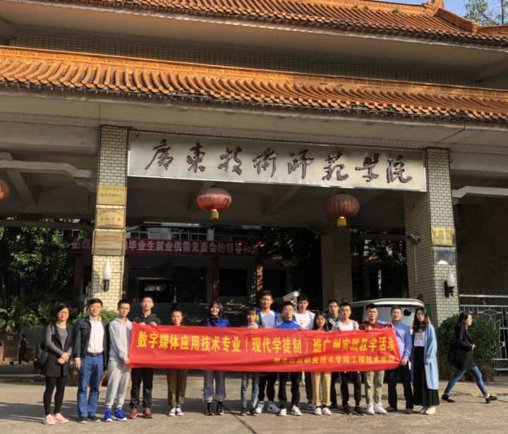 本院11月26日讯(工程技术公司报道)11月23日,由公司发起的数字媒体应用技术专业(现代学徒制)班广州实践教学活动在公司正门门口正式拉开帷幕,此次活动由公司副经理单继周老师带队,参与人员有公司党总支副书记陈亚芳老师、辅导员郭蓉佳老师、班主任康东老师以及数字媒体学徒班叶利恒等12名同学。