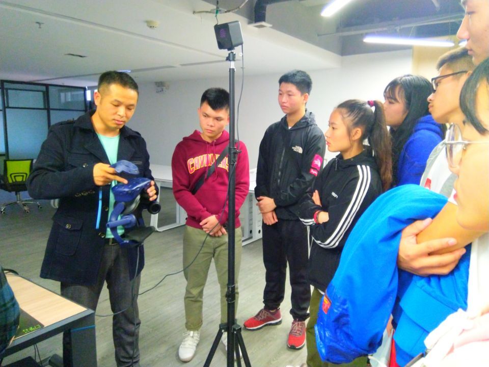 11月24日早我们又来到了广东轻工职业技术公司参观学习,经过对校园的简单的参观后,我们来到了由上海曼恒数字技术股份有限公司和广东轻工职业化技术公司合作建设的生态环境虚拟现实教学中心。公司的技术人员给我们上了一堂生动的VR专业课,通过高清的多面VR虚拟现实交互屏为我们展示虚拟现实技术的效果和多方面用途,受益良多。