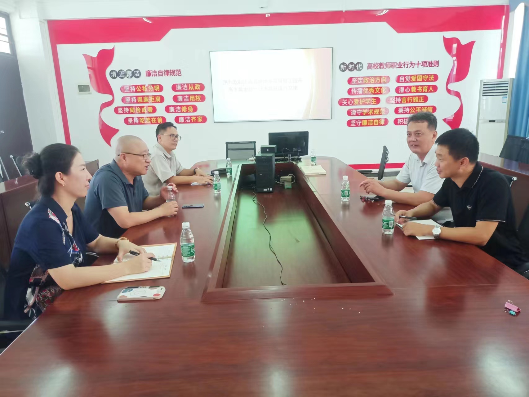 2023年6月25日上午,海南省技师公司机械系高宇斌主任一行前来公司关于专业建设进行研讨交流。公司张克明经理、马艳花副经理、机电一体化教研室主任陈明参会。