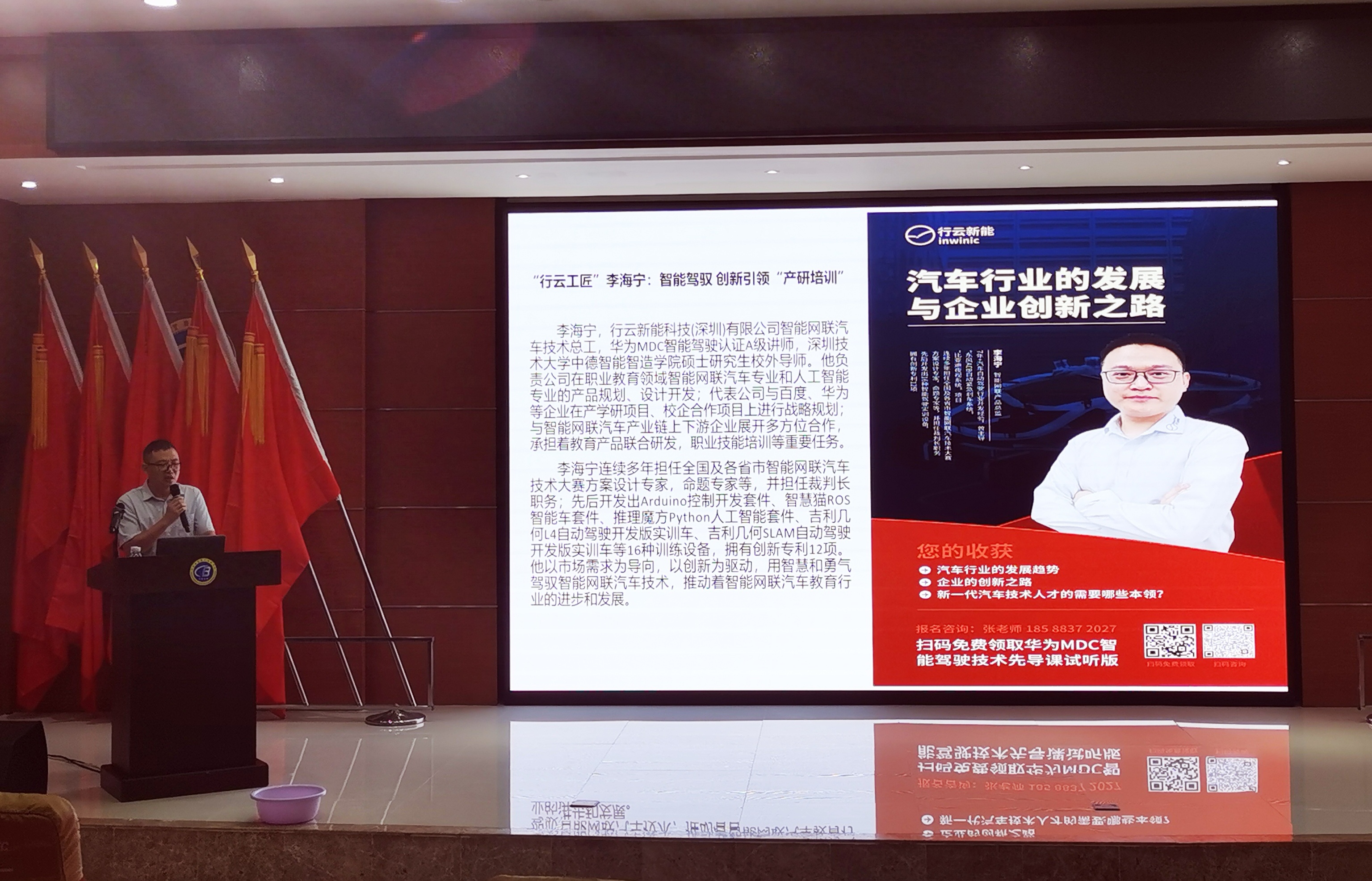 为了帮助伟德国际1946员工学习智能驾驶技术的前沿技术,掌握华为在智能驾驶领域的最新的技术成果,能够培养更多具备创新思维和实践能力的新能源和智能网联汽车人才,为行业的发展做出贡献。2023年11月7日下午,特邀请企业专家李海宁开展讲座。
