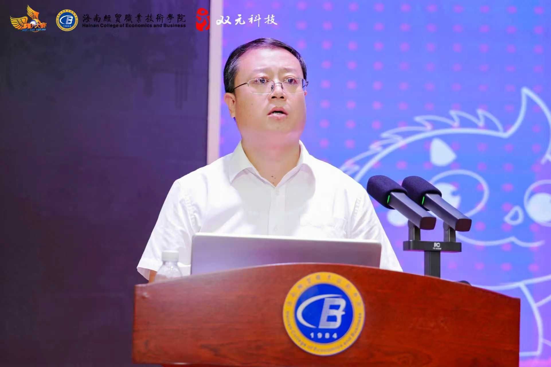 谭卓辉强调了大赛在培养数字化人才方面的重要意义,期待通过赛事促进海南产教融合,并鼓励选手积极交流、赛出水平。裁判员代表梁栋和参赛选手代表陈来烨庄严宣誓。