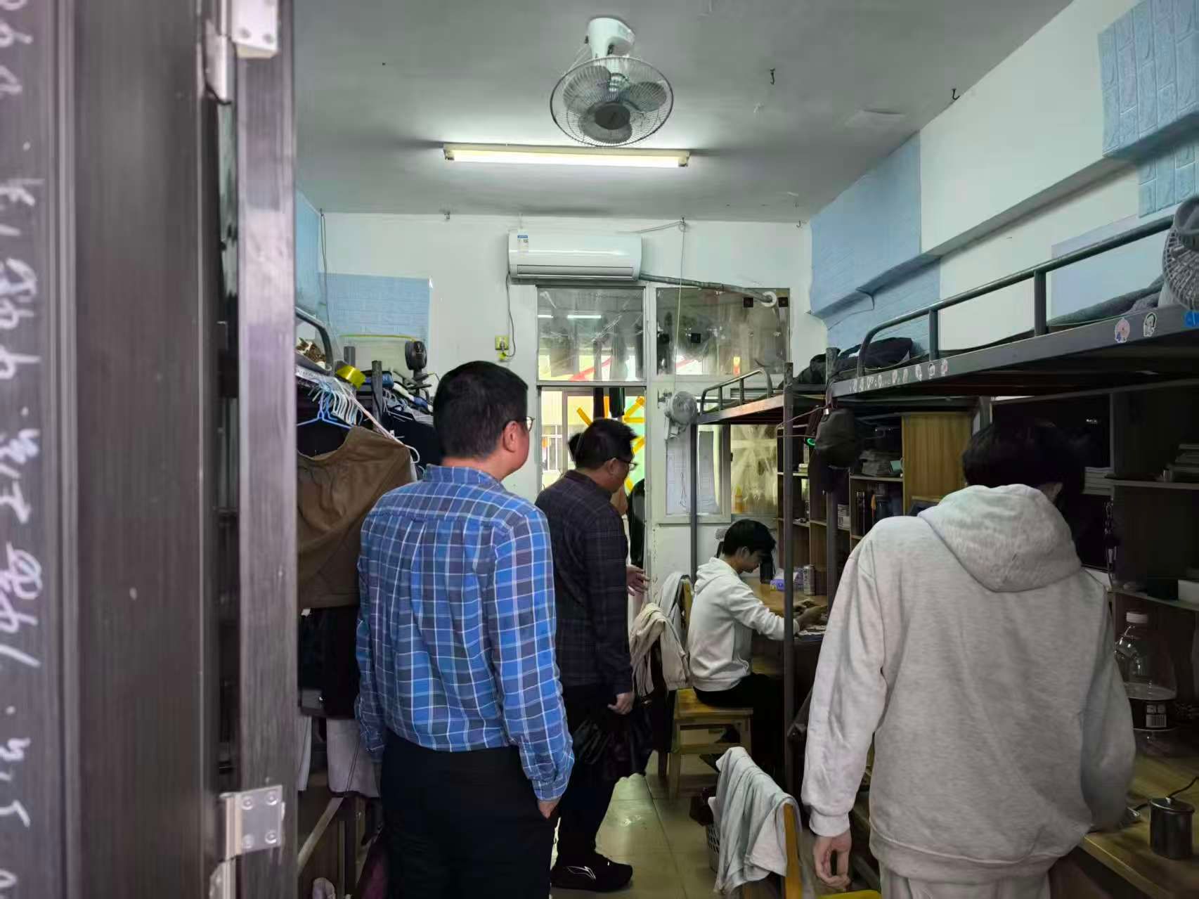 活动当日,公司党总支书记彭陈俊带队,全体辅导员、员工干部及志愿者组成考评小组,深入员工宿舍一线开展全面检查。考评团队聚焦宿舍卫生状况、安全隐患排查、文明氛围营造等关键环节,以实地查看、现场打分的方式严格考评,切实将 “以评促改、以评促优” 的活动目标落到实处。
