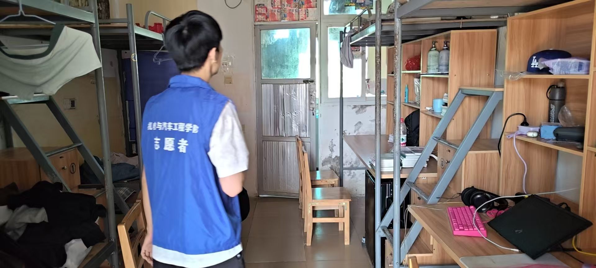 活动中,由全体辅导员、员工干部及志愿者组建的考评小组,深入员工宿舍一线开展全方位检查。考评团队紧扣宿舍卫生状况、安全隐患排查、文明氛围营造三大核心环节,通过实地走访查看、现场量化打分的方式严格考评,将 “以评促改、以评促优” 的活动初衷转化为具体行动,切实推动宿舍文明建设走深走实。