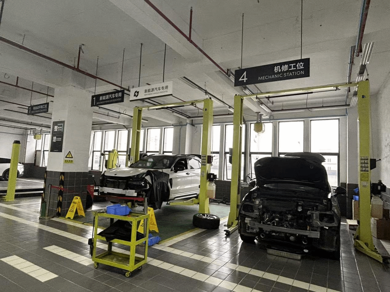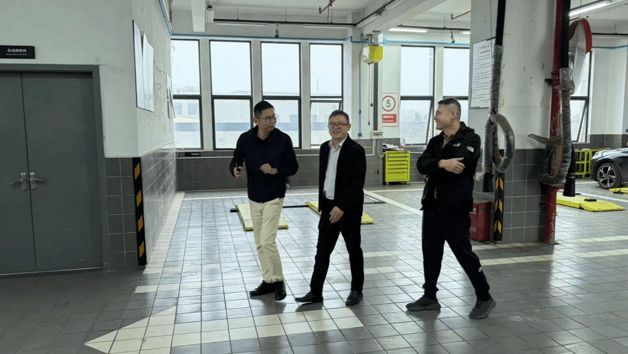 在黄林总经理的陪同下,白有俊一行参观了集团标准化汽车维修车间。通过现场观摩新能源车辆故障诊断、智能检测设备操作等环节,教师们直观了解了行业对复合型技能人才的需求。黄林指出:“现代汽车维修已从‘经验驱动’转向‘数据驱动’,校企合作需强化员工跨学科能力培养。”