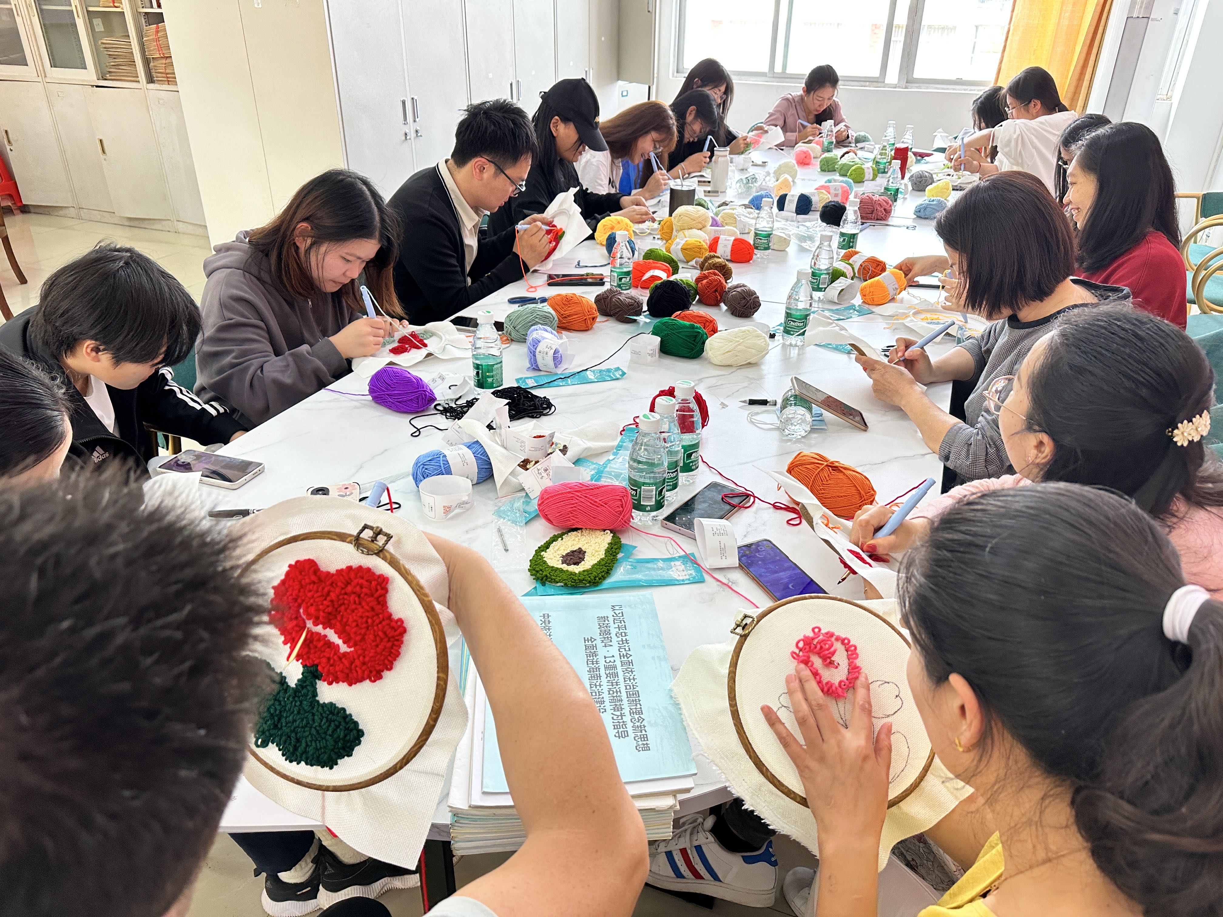 通过柔软的毛线和可爱图片的神奇组合,变化出各种温暖可爱的形象,每位教师和员工都积极参与,活动现场气氛热烈,妙趣横生,率先“戳”出图案的教师和员工也赢得了现场的阵阵掌声,成就感满满。