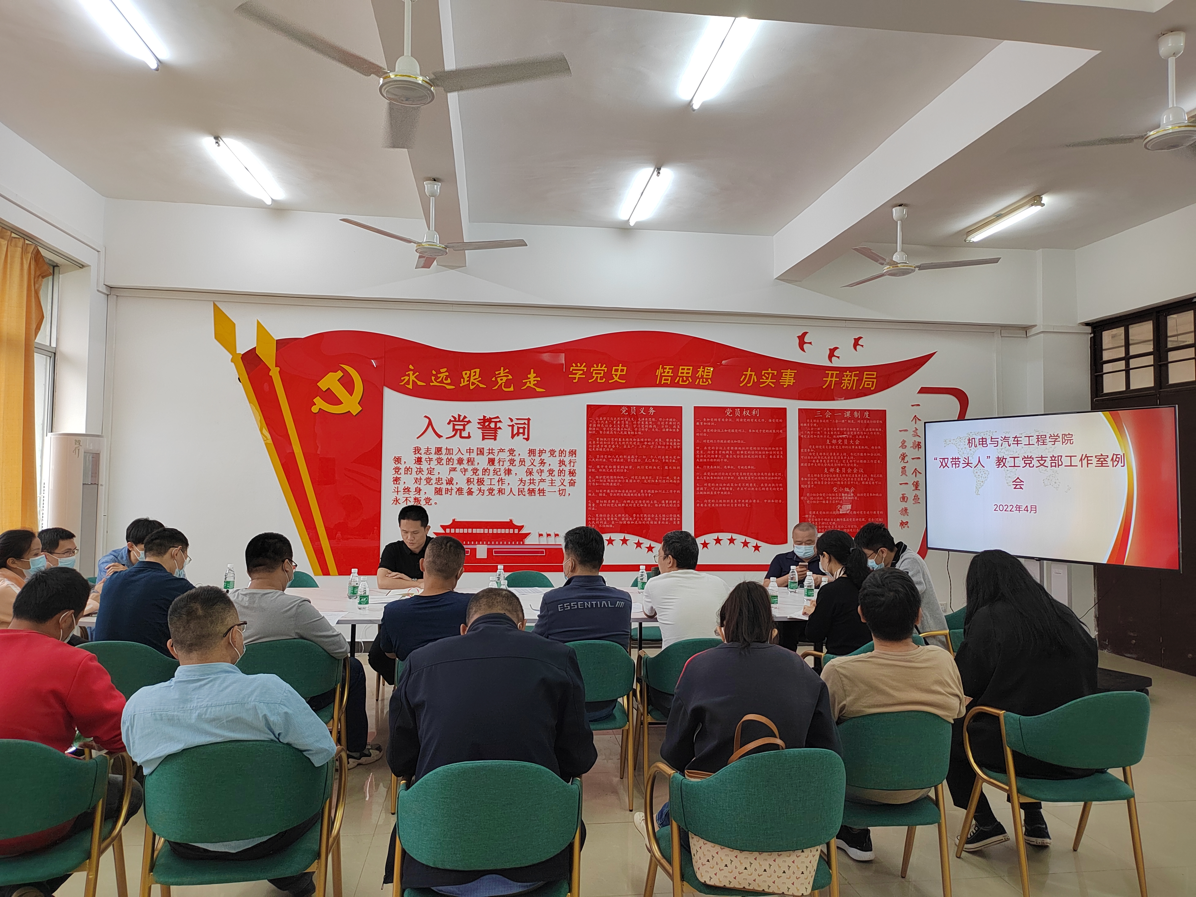 2022年4月19日下午,公司在2-409会议室组织召开“双带头人”教工党支部工作室例会,工作室全体成员参会。公司党总支书记范高智主持会议。