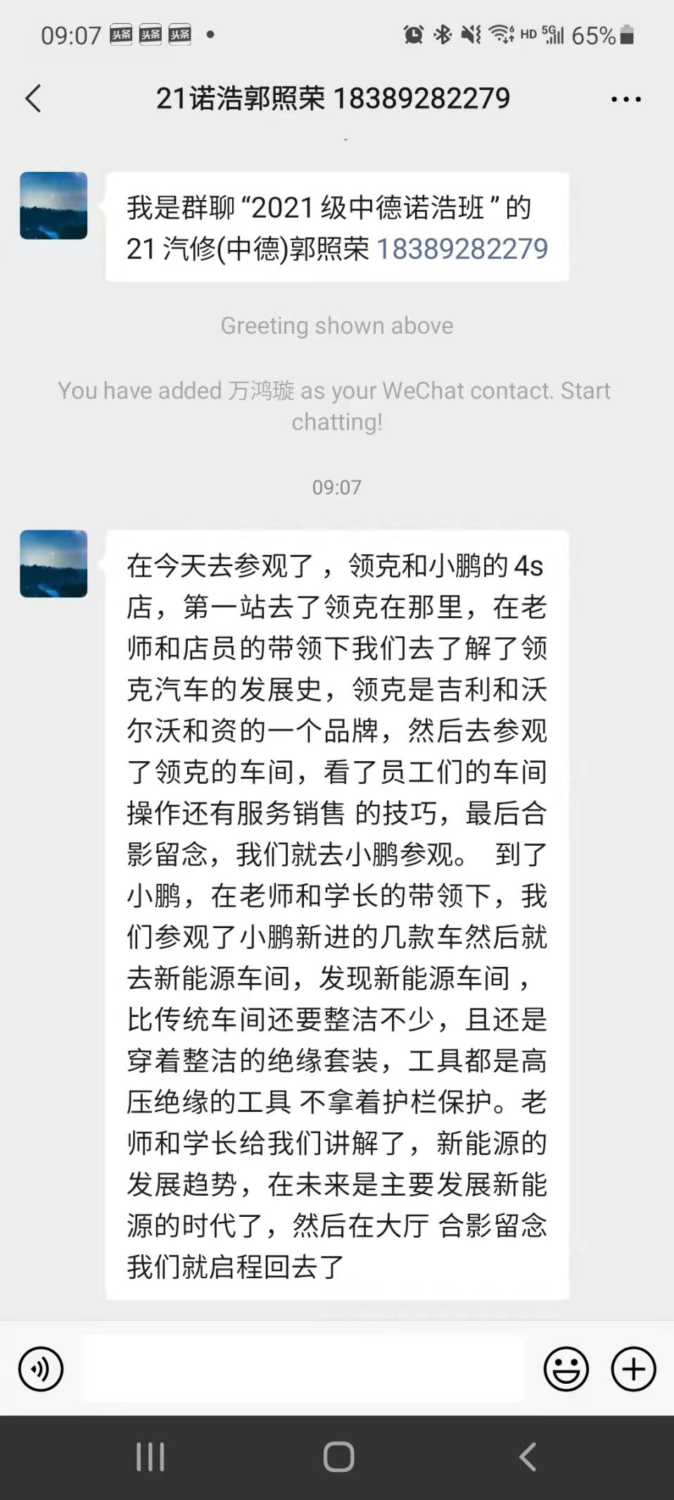等闲识得东风面,万紫千红总是春。海经贸中德诺浩班自2014年成立以来,不忘初心、牢记使命,紧抓机遇,在公司领导的大力支持下,与中德诺浩(北京)教育投资有限公司紧密合作,全体师生共同努力,扎实推进校企合作、产教融合工作,先后共建省内、深圳、广州和北京等地多个实践基地,为专业员工的专业课程学习及实习就业搭建高端平台,进一步提高了人才培养质量,培养出近300名汽车类高技能人才,专业人才培养工作跃上新台阶。
