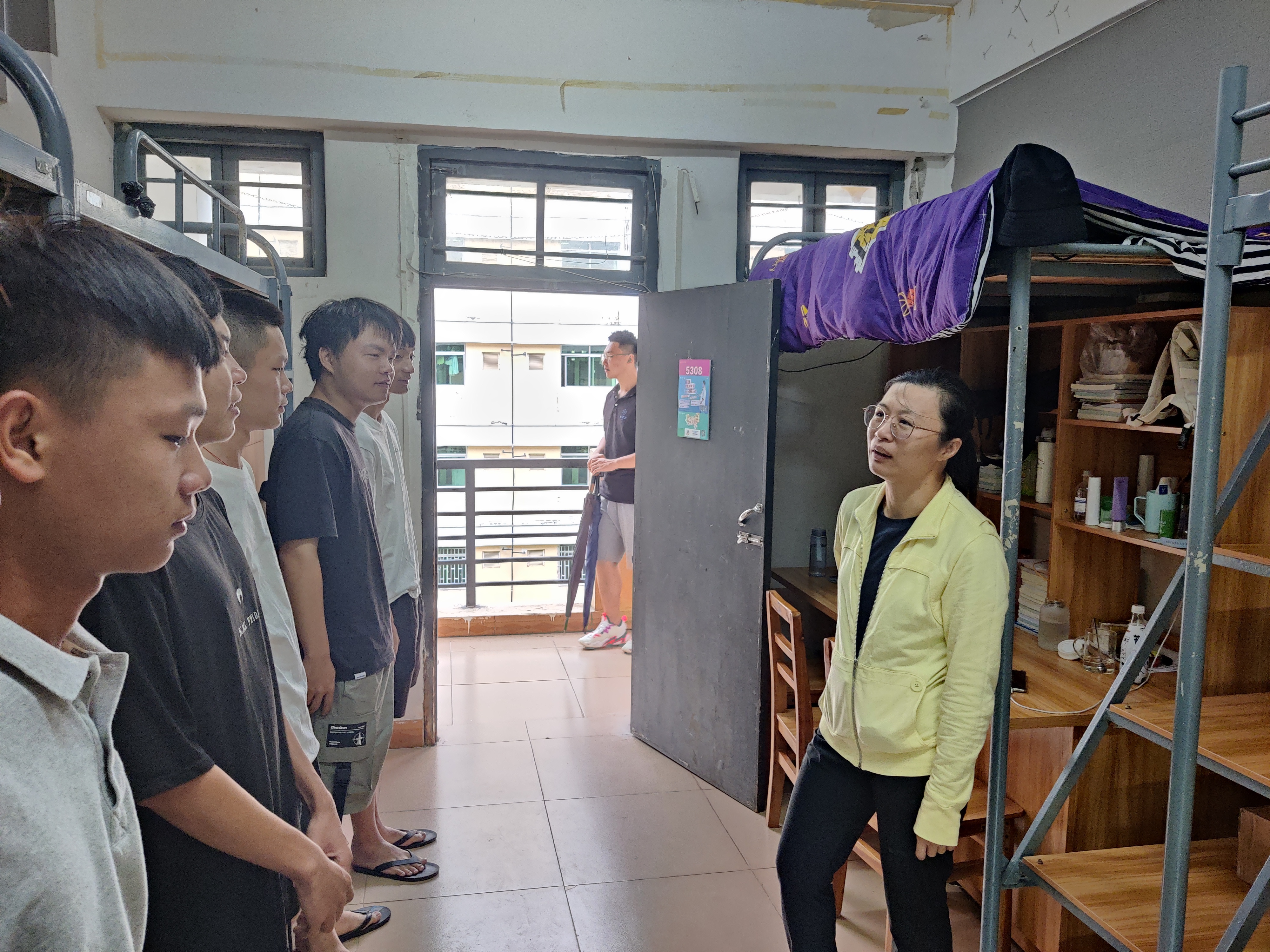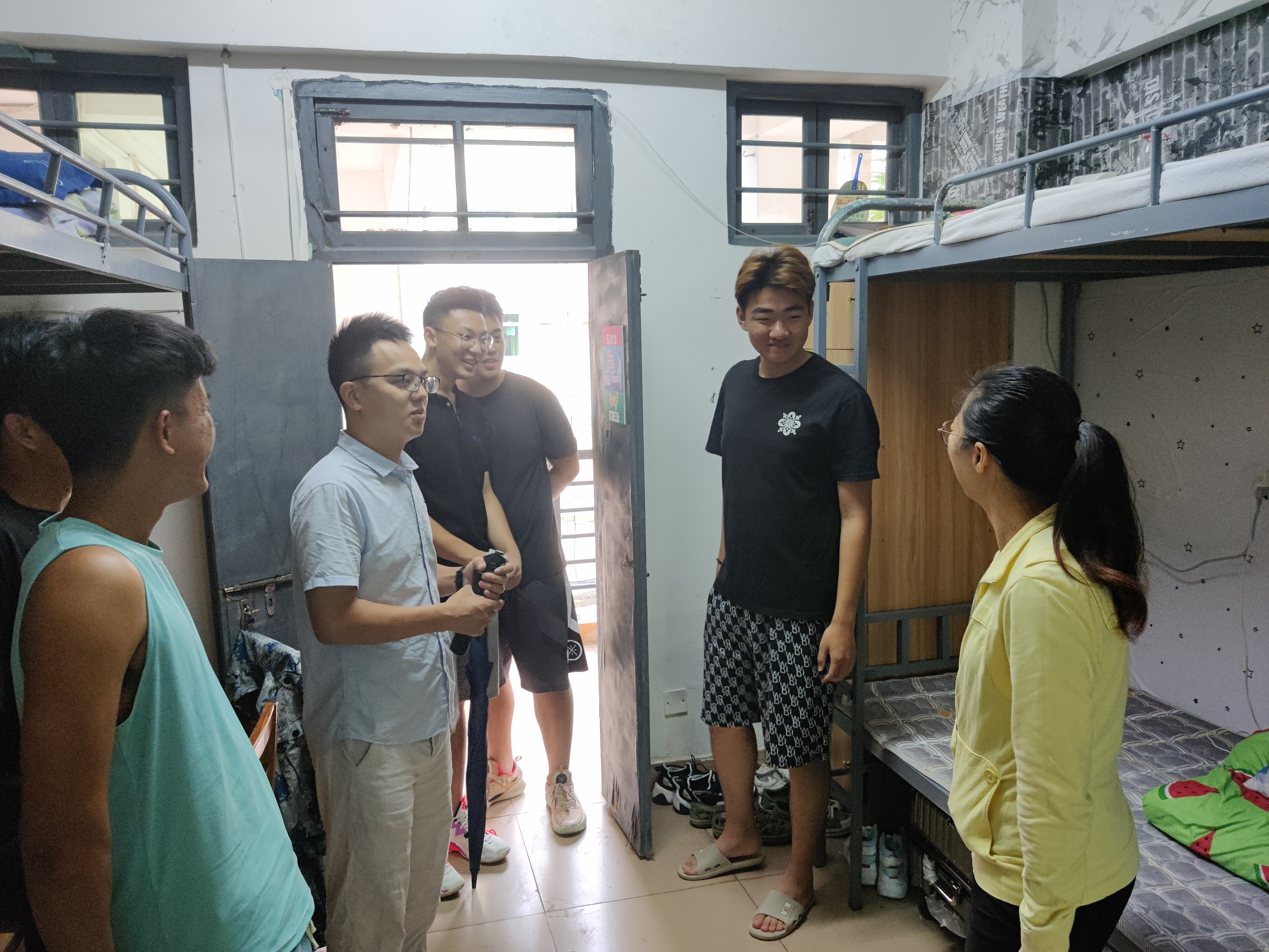陈亚芳副书记带领学工办全体辅导员亲自到员工寝室开展防风防汛工作,陈亚芳副书记特别看望了新生员工宿舍和指导检查防风防汛并对员工开展安全防范意识引导,同时带领公司员工干部对员工寝室的门窗进行加固,确保员工安全。