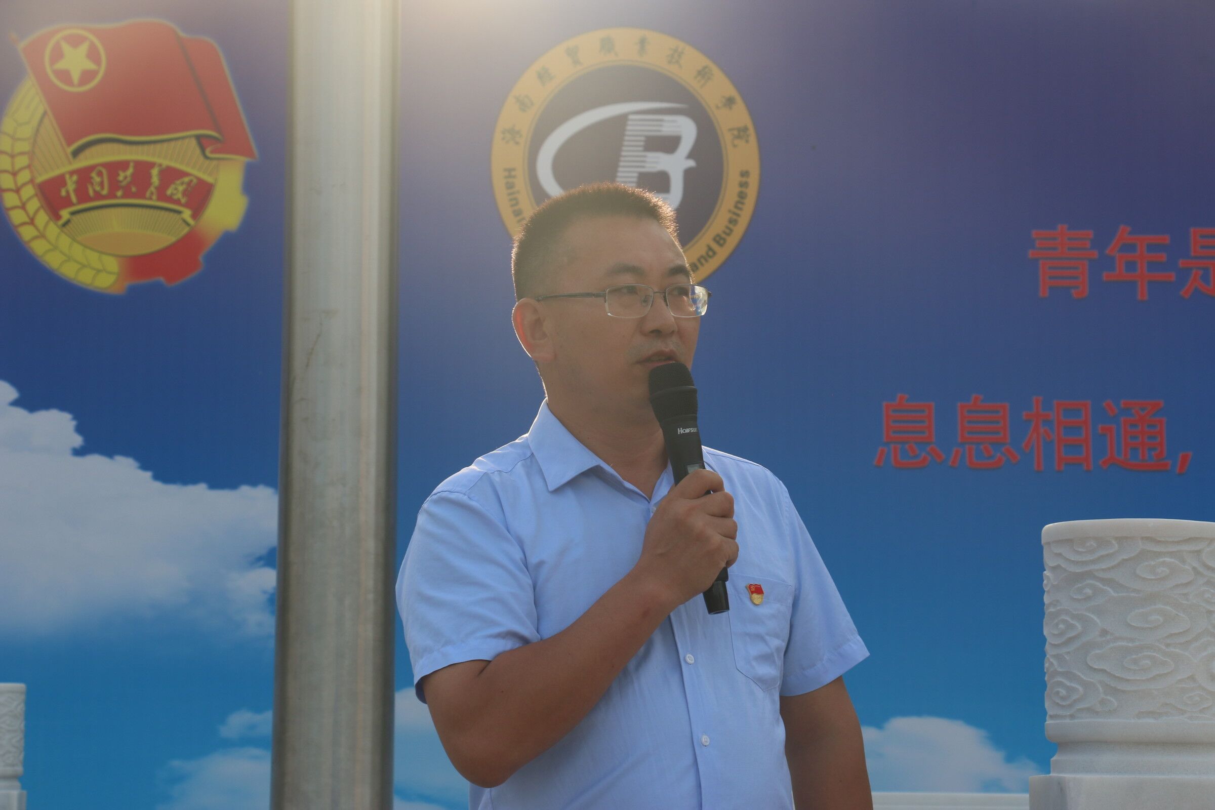 此次升旗仪式围绕“同心战疫我担当,青春建功自贸港”主题展开,大会第一项:升国旗、奏国歌、行注目礼。大会第二项:由员工代表发言、随后崔昌华副书记在国旗下的讲话,进行疫情知识讲解,同时希望全体师生身体健康。