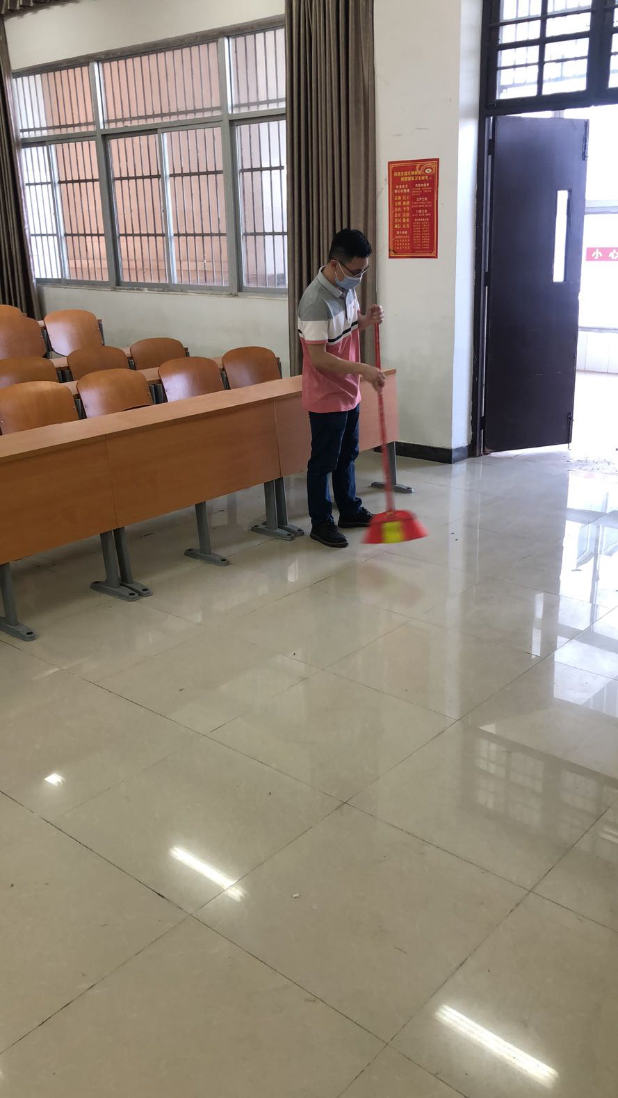 认真打扫的老师们