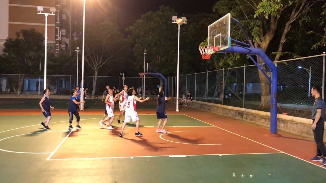 2019年9月27号(院青年媒体中心)讯,9月25日晚19:30在篮球场公司女教职工代表队迎来了公司第四场篮球赛。本场比赛为公司女队VS机关女队。赛前双方热身、试球,拉拉队也迅速地集结到场。