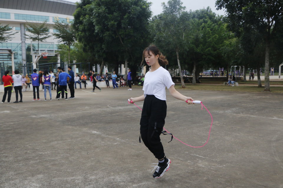 今天运动会的项目众多,丰富有趣:100米赛跑、迎面接力赛、袋鼠跳,跳绳等,吸引了众多员工竞相参与。比赛中,运动员们英姿飒爽,发扬不怕苦、不怕累、积极拼搏的精神,特别是18级的同学们,虽然刚刚迈进新校园不久,在比赛中努力拼搏,取得了优异的成绩。袋鼠跳趣味比赛中,更是将比赛拉到了高潮,场下加油声、助威声,一浪高过一浪,充分展示了海经贸全校师团结一心的精神面貌。。比赛既有紧张激烈,又妙趣横生,场面和谐、热闹,运动会在欢声笑语中拉下了帷幕。