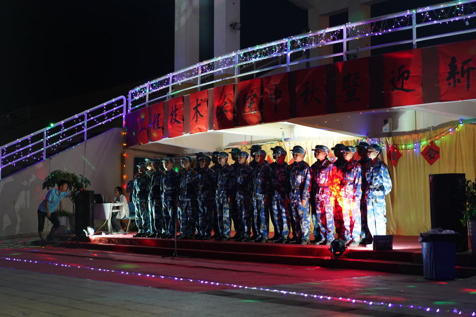 接下来由18级机电班全体同学带来《强军战歌》及其他班级的精彩合唱。本次节目不仅有新生,学长学姐及老师演出,而且形式多样,内容精彩纷呈,现场气氛火热而喜庆。接着在同学们的期待声中,老师合唱《相亲相爱一家人》,教官的合唱,赢得同学们阵阵掌声。此外,个人才艺表演《奇妙能力歌》、《光辉岁月》等众多精彩节目。节目中间还设计了新生拔河比赛,气氛十分热烈,晚会的最后是人文艺术公司的辅导员徐超老师过来与公司老师合唱及陈铭峰同学独唱中落下帷幕。整场晚会精彩不断,高潮迭起,展现公司师生才华和青春风采,不仅为大家带来中秋佳节的温馨,,更是让新生们感受到了老员工活的丰富多采。