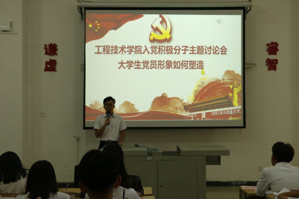 会议上,员工党支部书记代晓明老师向入党积极分子表示要懂得思考,要想成为一名合格的党员,就必须有所行动,同时,她也跟入党积极分子分享了自己的一些学习心得。接下来由团总支副书记符东平上台就本次会议主题讨论进行分小组安排。小组分组安排结束,各小组围绕“老员工党员形象如何塑造”,马上展开热烈的讨论。同学们在进行激烈的讨论之后,纷纷踊跃发言,提出自己的见解和建议,现场气氛活跃,热火朝天。讨论结束后,两位小组代表上台与大家分享对会议主题的讨论成果与自己的感悟。