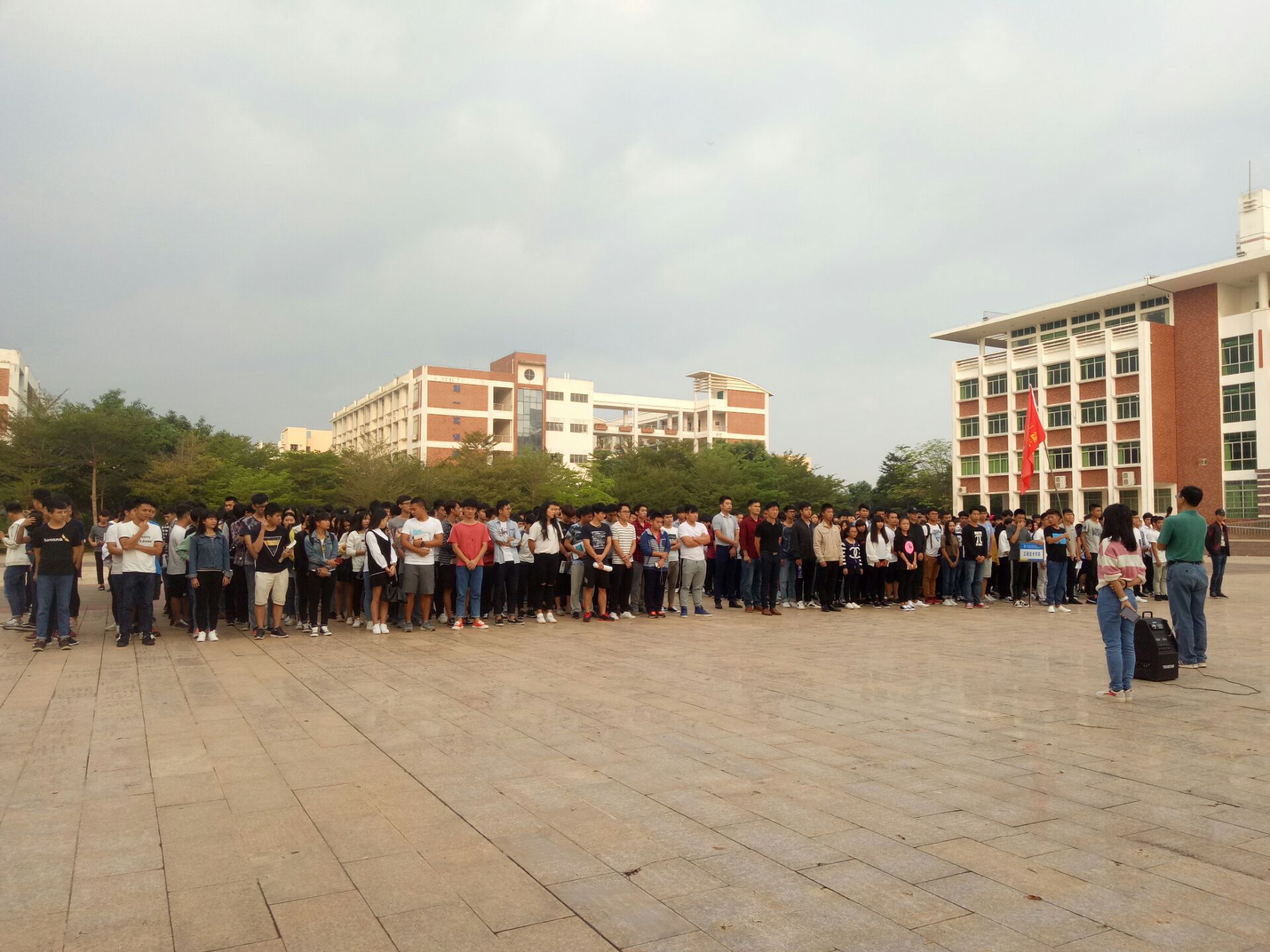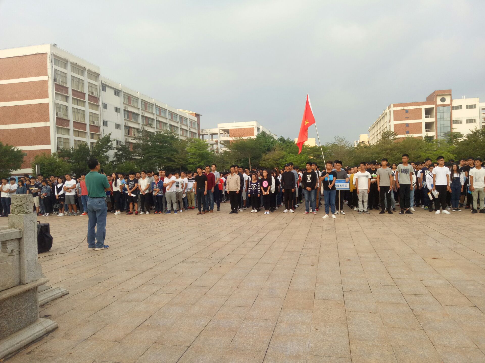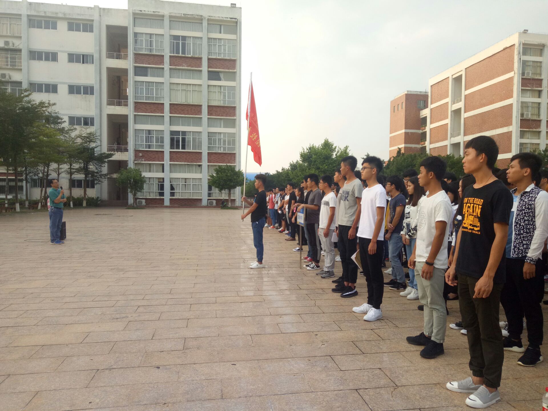 10月23日讯 (工程技术公司 青年媒体中心报道)10月23日7:30,公司大一大二全体员工聚集在经贸广场下参加以“爱国”为主题的升旗仪式,与同学们一同参加本次升旗仪式的有陈继敏书记、梁其钰老师、唐图老师和周恺老师。