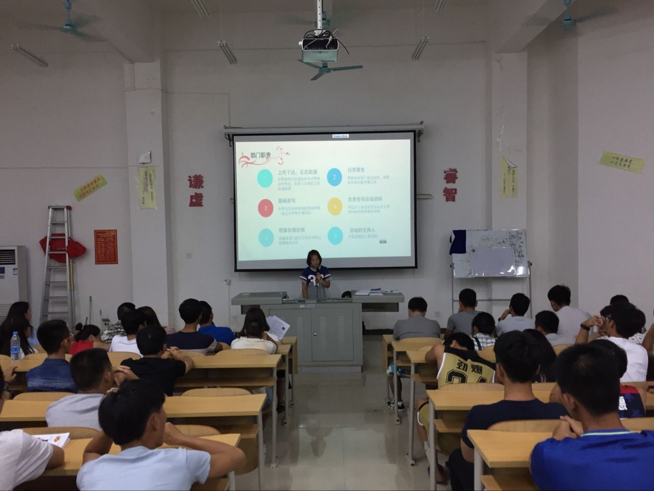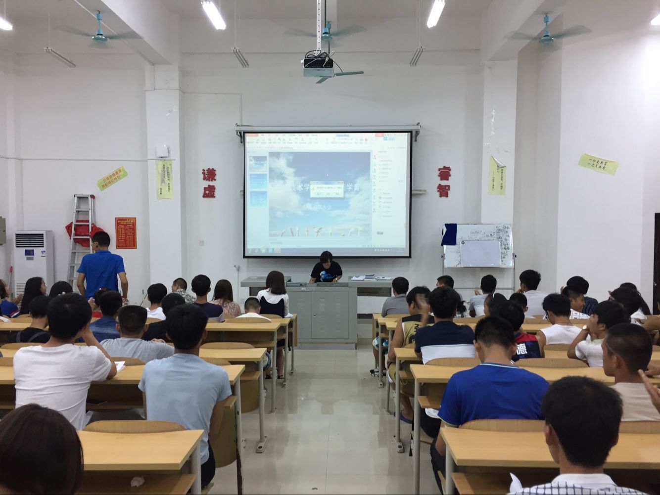 下午七点半,团学青全体成员就已着正装来到教学楼开始团学青第一轮招新面试。此次面试依旧遵循上一届的面试方法,面试先由各部门部长展示所在部门的ppt相关资料。之后给各个部门分配不同的面试场所,不同的部门面试互不干扰,这不仅使面试工作紧张而有序的进行,也极大地减少了同学们等待的时间。在面试过程中,各部门部长根据本部门的工作重点和工作性质考察了应试者的各方面能力。值得一提的是,在面试现场,面对各部门负责人的提问,16级的同学灵活应对,从容而自信,对部长们提出的问题发表了自己独到的见解,这使得在场的部长们眼前一亮。据统计,第一轮面试共有200位工程技术公司的学子参加,每位考生在考官面前必须抓住仅有的几分钟时间获得考官的认可才有机会进入下一轮面试。