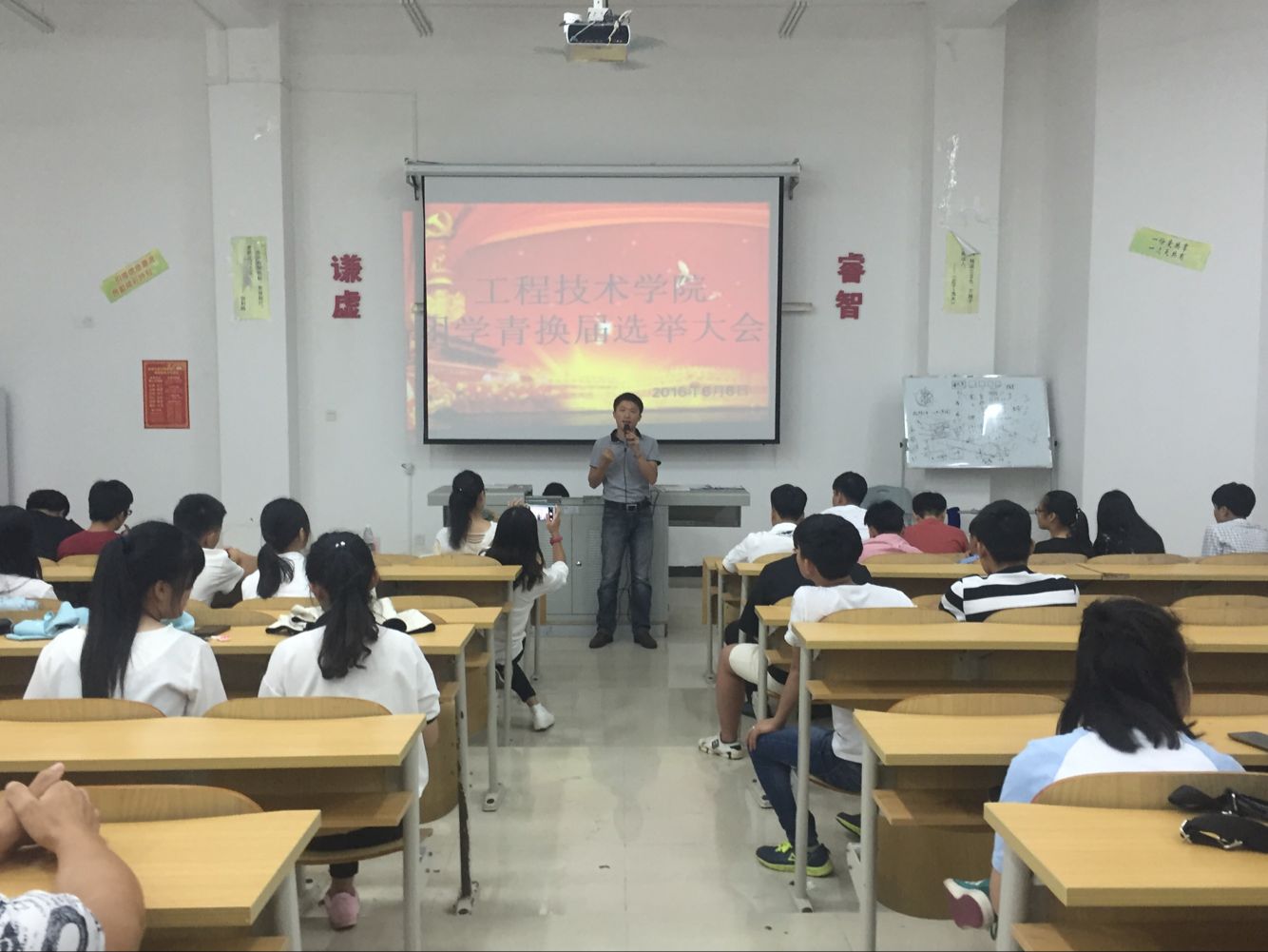 67日讯(工程技术公司 岳将红报道)又是一年毕业季,在学长学姐激情飞扬,拥抱挥帽的欢乐时刻,团总支员工会换届选举大会也在热烈上映。66日晚7点整,工程技术公司第一届团学青换届选举大会在2―526举行,出席本次大会的有院团总支书记梁其钰老师、院团学青负责人代晓明老师、院主席团成员以及全体团学青干事,大家共聚一堂,一起来迎接这神圣而又激动人心的时刻。