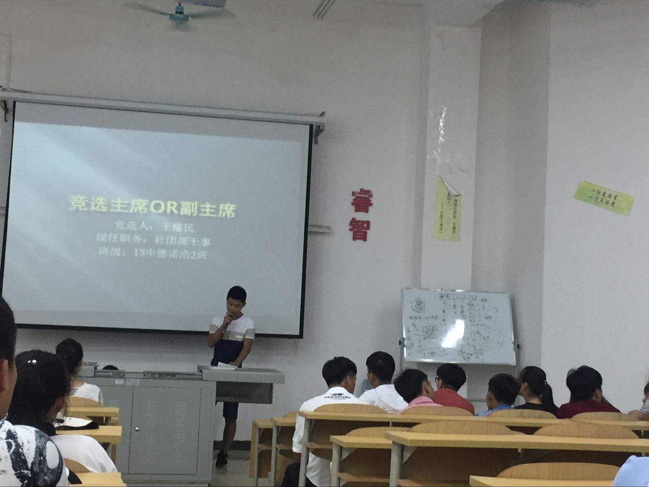 大会首先由团学青代表发言。来自15通信班的岳同学通过对一年的团学青生活的总结,向同学们讲述了初入时的迷茫,困惑,到后来的觉悟与奋起的心路历程,并跟同学们分享了她的收获。然后是员工会主席赵丽发言,赵丽学姐在总结一年工作的同时,也提出了对下一届团学青的一些建议,她希望团学青队伍里能够有更多主动,有热忱的同学加入,一起成长。两位代表发言结束后,换届选举正式开始。俗话说,机遇总是青睐有准备的人,上来竞选的同学们,或通过豪情壮志的演讲,或通过PPT对自己所竞选职位的理解,让大家了解自己的意愿,展示自己的雄心,整个会场气氛一片热烈。竞选结束,团总支书记梁其钰老师总结。梁老师首先表示非常开心看到各位同学能够踊跃参选,同时针对今晚同学们竞选岗位志愿不平衡的现象,他指出,每个岗位都是平等的,而我们学到的东西大多都不是在自己岗位上学到的,他希望同学们能够摆正自己的价值观,清楚自己想要什么,看待岗位要一视同仁,只要是想进步进不怕没有平台。整个大会气氛一片祥和。