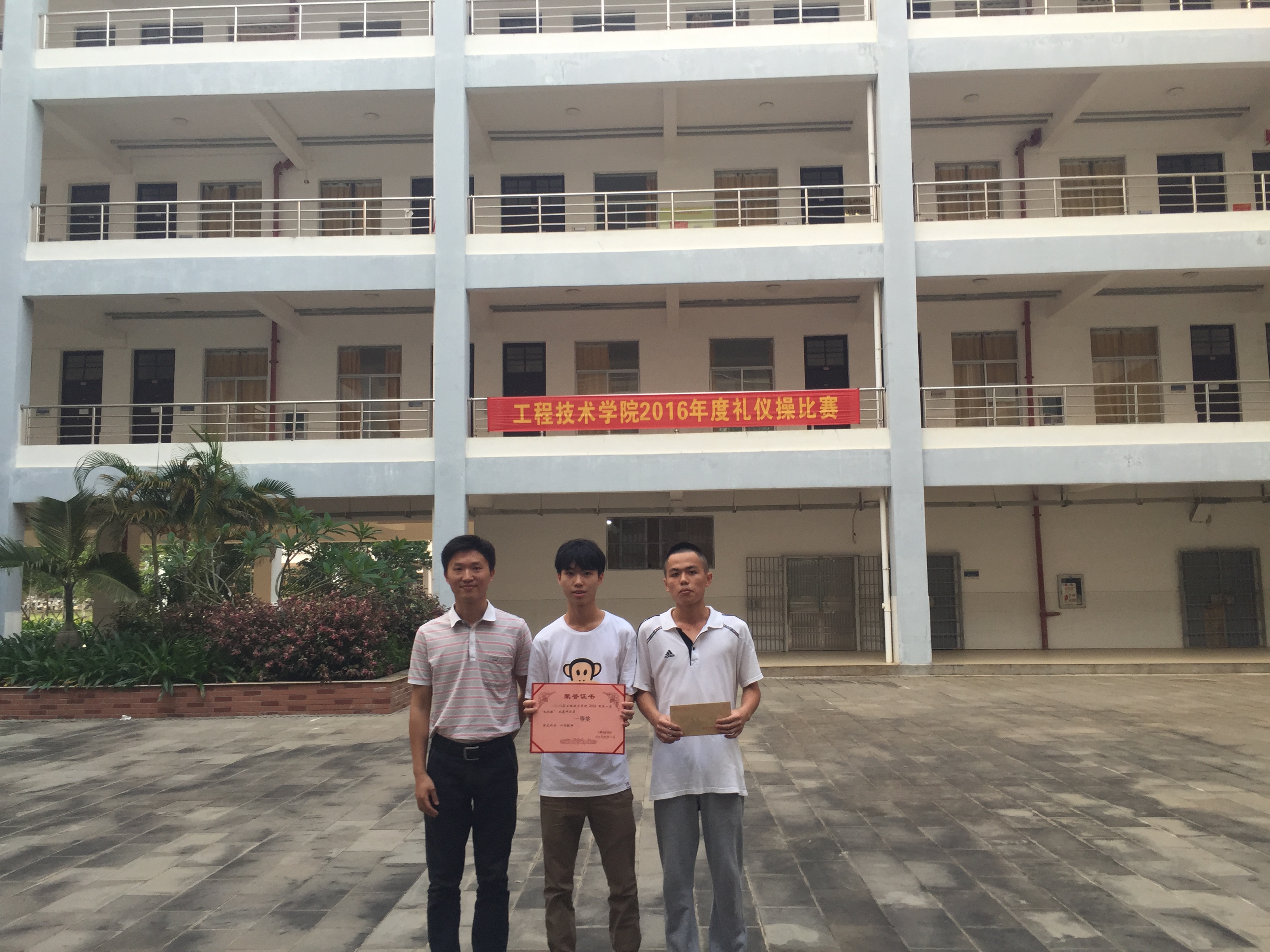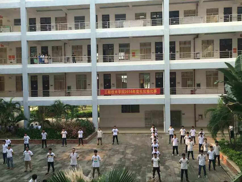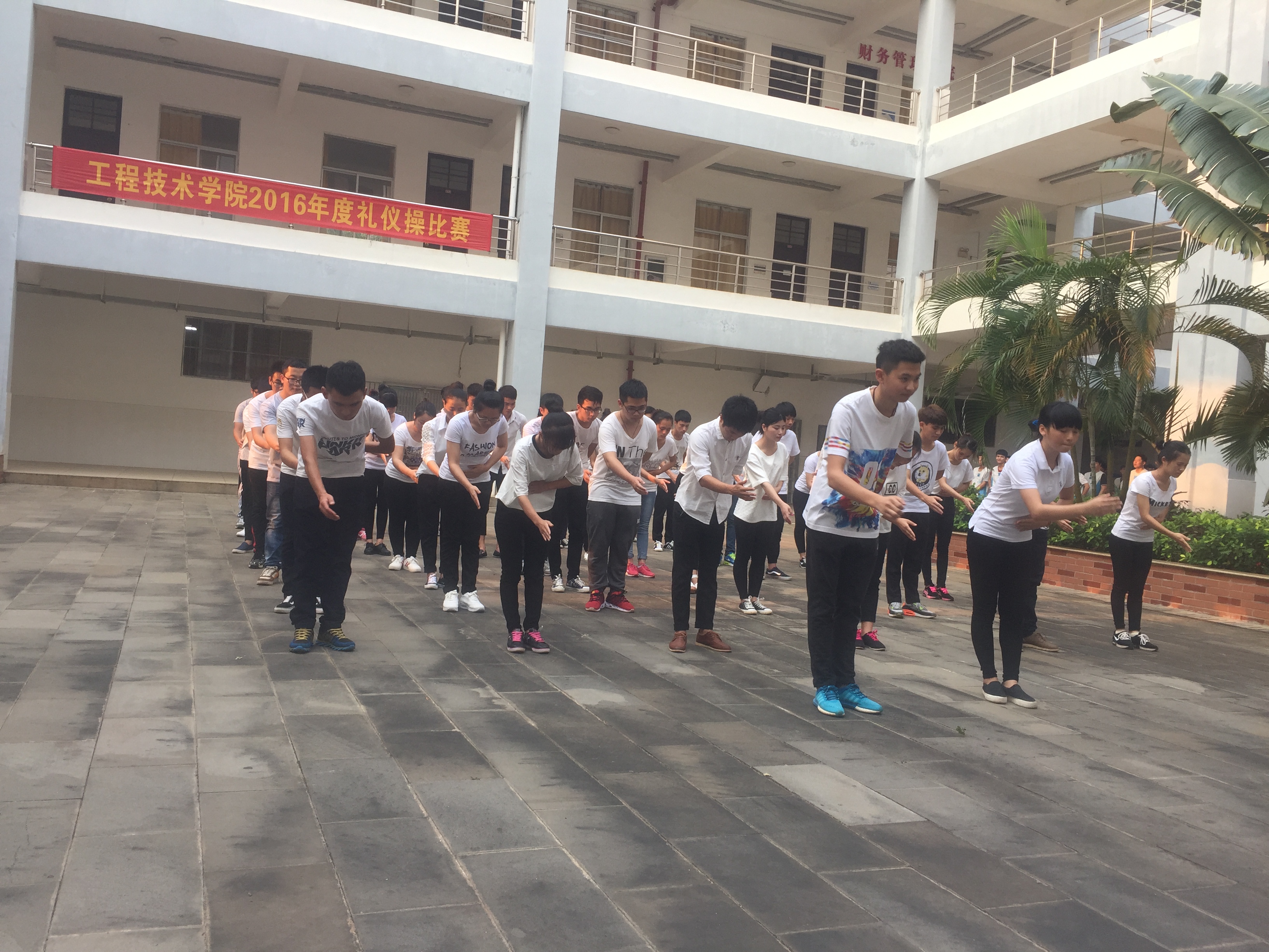 4月12日讯(工程技术公司 李京京报道)为培养员工文明、诚信、有礼貌的良好形象、弘扬礼仪风采,公司在4月12日下午5点整在第二教学楼下举行了工程技术公司2016年度第一届礼仪操比赛。本次比赛担任评委的有工程技术公司团总支书记梁其钰老师、15级辅导员肖洁老师、团学青主席赵丽、副主席叶绵海、副书记朱振通、副秘书长李京京。比赛在主持人容世超的开幕词下拉开了帷幕。