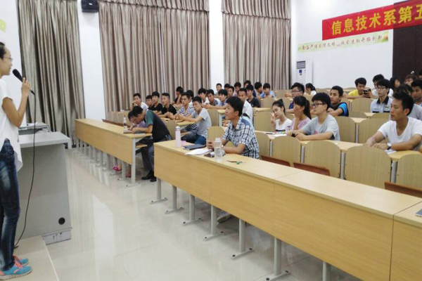 晚上19:30,主席宣布工程技术公司团学见面会暨迎新动员大会正式开始。首先,由原机电系导员陈秋菊老师为两系团学相互配合工作进行引导讲话。由于公司的要求,原两个系部合成了现在的工程技术公司,为了使这个大家庭有条不紊的运作下去,陈秋菊老师希望大家能做好带头作用,两系之间相互磨合,相互交流,共同创造公司新篇章。