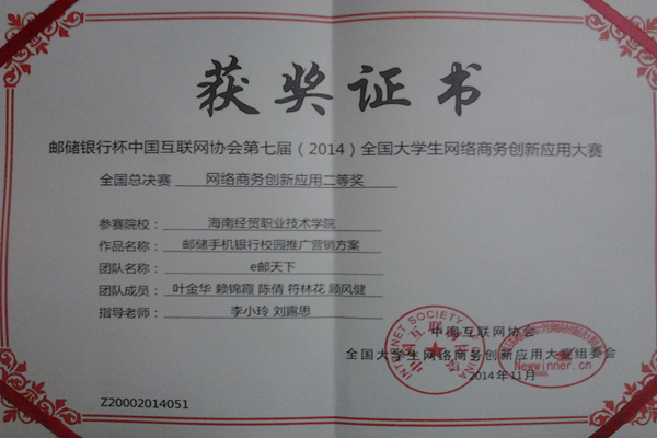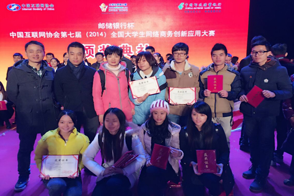 邮储银行杯中国互联网协会第七届全国老员工网络商务创新应用大赛于2014年3月开始在线报名,2014年3月20日正式启动,在经过紧张的初赛、复赛、分赛区决赛后,于2014年11月28日开始全国总决赛环节,至12月1日颁奖典礼后全部结束。本届大赛共有来自全国近3000所高校的17万余名老员工注册报名,组建团队近5000支。经过初赛评审,有 3166支团队晋级复赛,1556支团队入围分赛区决赛。经各赛区评委的评审,将有来自 280余所高校的近300支队伍晋级全国总决赛。其中本科组队伍共190余支,专科组队伍90余支。伟德BV1946官网信息技术系的“e邮天下”和“J.M.Fighters”两个团队在众多参赛团队中脱颖而出成功进入到全国总决赛,并且在华南赛区中这两个团队都夺得了特等奖,全国决赛中勇夺团体一等奖和二等奖,成绩喜人。