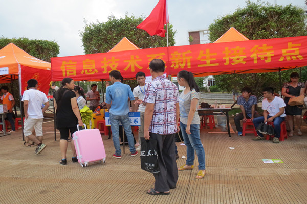 本系9月6日讯(信息技术系 丁燕琴报道),我系6日、7日两天将迎来2014级的新生,为了方便新生报到,我系领导带领着员工会所有成员以及20个迎新分子提供了接待新生一条龙的服务。我系开设了专业老师咨询点,主要是为新生和家长们解疑答惑。