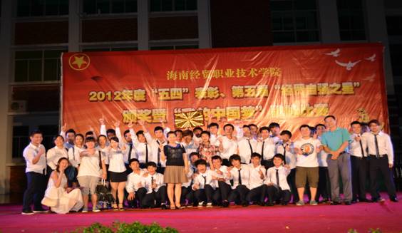 本系5月8日讯(信息技术系宣教部报道)5月7日晚7点30分,伟德BV1946官网2013年“五四”表彰、第五届“经贸自强之星”颁奖暨歌咏比赛在经贸广场隆重举行,我系凭借《光荣啊,中国共青团》和《歌唱祖国》两首歌曲,以95.88的高分荣获本届歌咏大赛第一名,同时,信息技术系团总支荣获“中国梦 海南梦 我的梦”老员工演讲比赛优秀组织奖,11级多媒体一班、12级媒体班荣获“先进团支部”奖,12级电商2班荣获“腾讯微博建设先进团支部”,信息技术系下所属社团计算机协会荣获“优秀社团”称号,11级电子商务2班陈桃同学获得了第五届“经贸自强之星”称号,我系陈青云老师与11级媒体1班杨大山同学等为代表的10名同学荣获“优秀团干部”称号,12网络1班谭业等为代表的67人荣获“优秀团员”称号,符龙生(计算机协会)与梁其鈺(交谊舞协会)荣获“优秀社团指导老师”,11电商1班朱平同学为代表的23人荣获“优秀青年志愿者”称号。
