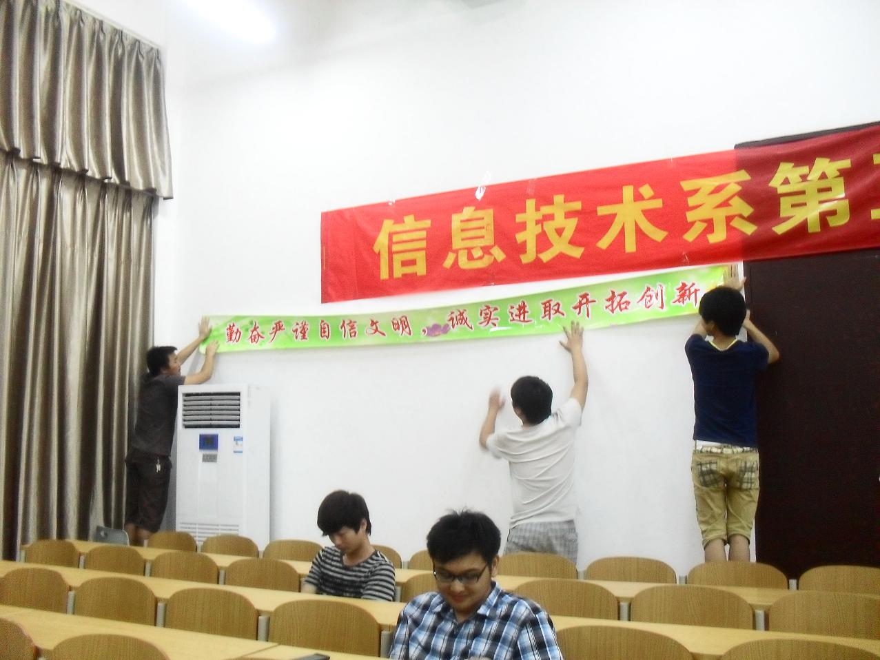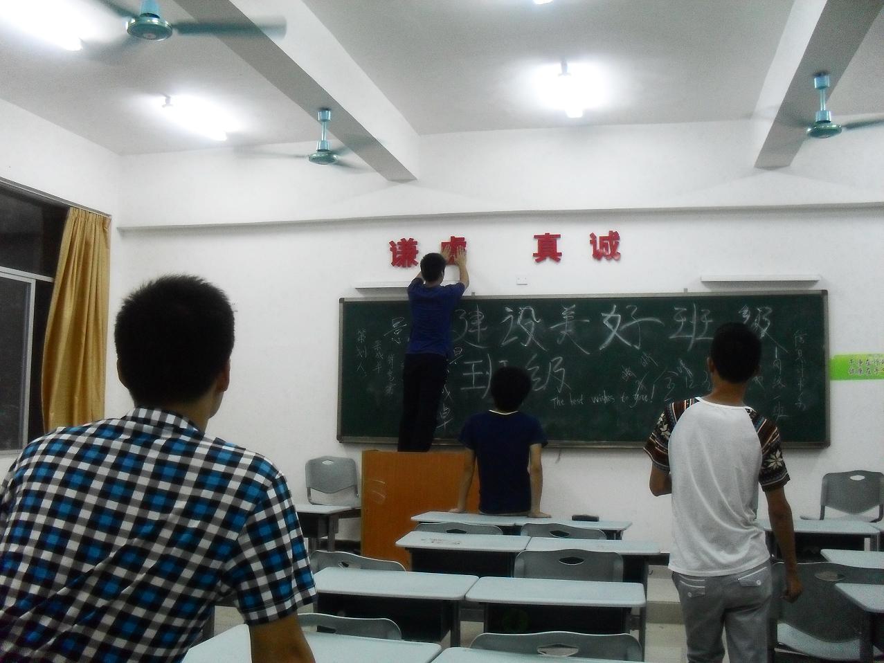 我系于5月下旬-6月中旬开展为期半个月的员工环境创建活动,每个班级晚自习室,宿舍区域等场地进行了布置,每间教室不仅贴有班级的各类激励标语,人生座右铭等,还有名人的成功事迹,如马云,马化腾等更有名人语录。例如“为学之道,莫先于穷理;穷理之要,必先于读书——宋(朱熹)”,来鼓励我们奋发图强。建设文化班级、文明宿舍,再一次凝聚了各班整体的力量,而所营造的氛围则用来提醒我们正是“恰同学少年,风华正茂”。