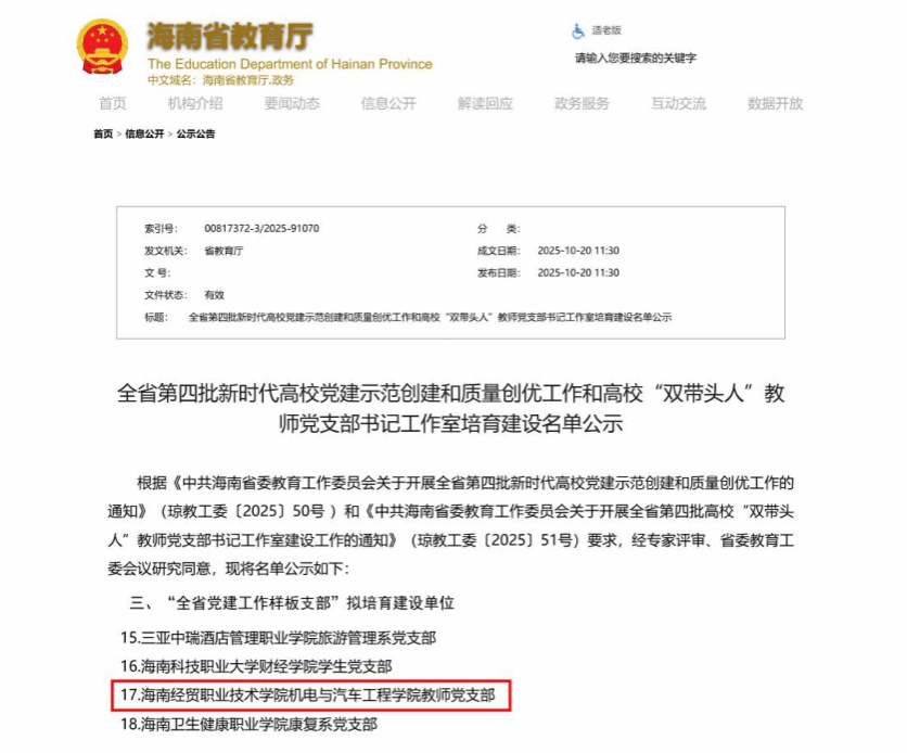 近日,中共海南省委教育工委公布了新一轮“全省党建工作样板支部”培育建设单位名单,伟德国际1946教师党支部(以下简称“伟德国际1946教师党支部”)经过严格遴选,成功入选。这是该支部党建工作继入选全省高校“双带头人”教师党支部书记工作室以后取得的又一重要阶段性成果,标志着其基层党组织建设迈上了新的台阶。