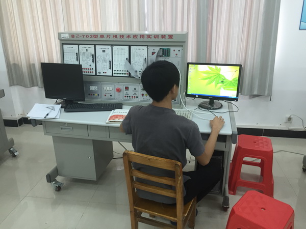 ◇实训室简介 1.门牌号:3-504 2.责任教师:吴老师 3.主要设备: (1)单片机技术实训装置 THMEMU-1 1套 (2)单片机技术实训装置 BZ-703 2套 4.课程及主要实训项目:《单片机技术》 项目一 数据传送 项目二 数据排序 项目三 定时器应用 项目四 8255 I/O扩展 项目五 DAC0832并行D/A转换 项目六 ADC0809并行A/D转换
